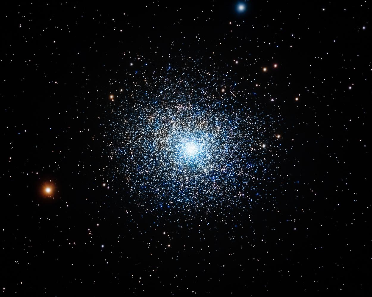 In this captivating photo I took of Messier 13, also known as the Great Hercules Cluster, I captured a dazzling cluster of stars nestled within the constellation Hercules. This globular cluster, located approximately 25,000 light-years away from Earth, houses an astounding 300,000 stars densely packed together in a sphere spanning about 145 light-years in diameter. The incredible brightness and striking blue hues exhibited by certain stars within Messier 13, especially its mesmerizing core referred to as the "propeller," create an otherworldly ambiance, making it an awe-inspiring sight to behold.