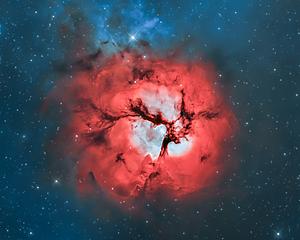 Unveil the enchanting allure of the Trifid Nebula! Located in the constellation Sagittarius, this celestial gem showcases a mesmerizing trio of colorful clouds—emission, reflection, and dark nebulae—interwoven in a cosmic dance. As a stellar nursery, the Trifid Nebula births new stars amid intricate dust lanes, resulting in a breathtaking display of cosmic artistry. This captivating print captures the essence of this celestial wonder, inviting you to marvel at the beauty and mysteries of the universe. Perfect for astronomy enthusiasts and art aficionados, this astrophotography masterpiece will elevate your space with its celestial charm.