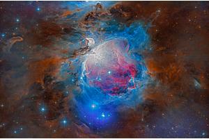 A dramatic and vibrant version of M42, the mesmerizing Orion Nebula. Immerse yourself in a cosmic spectacle that bursts with vivid colors and intense energy. This rendition of M42 showcases the dynamic interplay of glowing gas and dust, intensified by a vibrant palette that brings the nebula to life. From the brilliant oranges and reds to the striking blues and purples, every detail of this cosmic jewel is amplified, revealing the intricate structures and tumultuous beauty within. Let this extraordinary print transport you to the heart of the Orion Nebula, where stars are born and the forces of the universe converge in a celestial ballet. Display it proudly and let the dramatic and vibrant M42 inspire awe and wonder, serving as a reminder of the boundless wonders that await exploration in the cosmos.