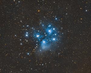 Widefield print featuring M45, also known as the Pleiades or Seven Sisters. This expansive composition beautifully captures the essence of this renowned open star cluster. Spanning approximately 110 light-years across, the Pleiades dazzles with its delicate blue stars surrounded by a stunning reflection nebula. The vastness of space comes alive as numerous stars and cosmic dust intertwine, creating a celestial masterpiece. Immerse yourself in the breathtaking beauty of this widefield shot as it unveils the captivating details and the cosmic dance of the Pleiades cluster. Display this extraordinary print and let the splendor of M45 adorn your space, serving as a constant reminder of the wonders that lie beyond our earthly realm.